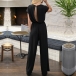 Looking for a jumpsuit that will make you stand out from the rest? Try this one! This jumpsuit features a solid color design, a V-neckline, self-tie waist, and wide-leg silhouette. It's perfect for daily wear!