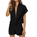 Fashion Solid Color V-neck Short Dolman Sleeves Romper