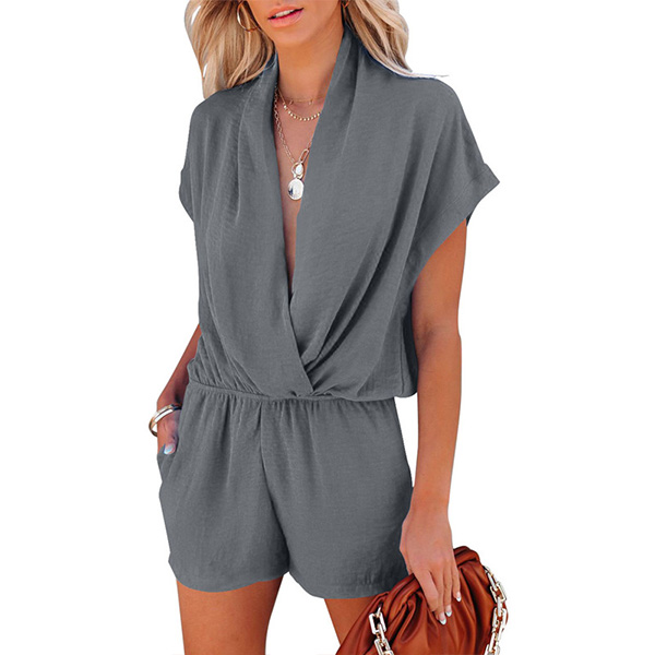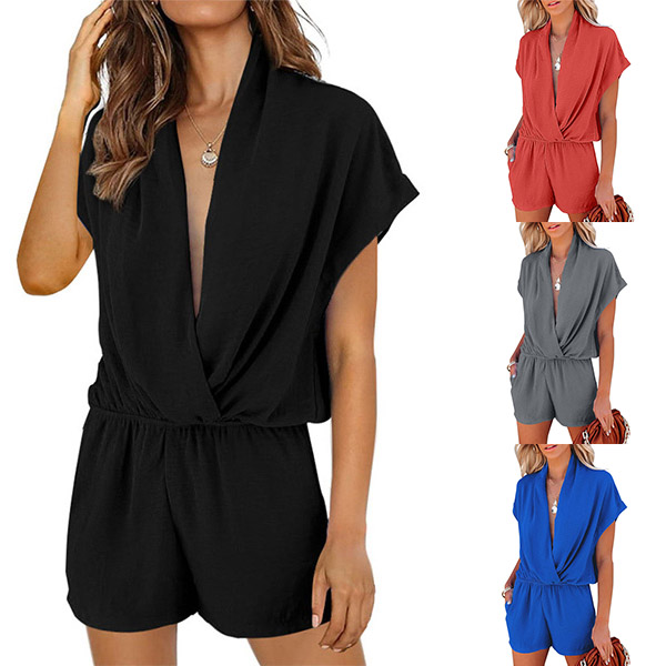 This romper is perfect for daily wear or vacation wear! It features a solid color, V-neck, short dolman sleeves, perfect for pairing with your favorite sandals for a casual look.