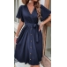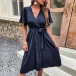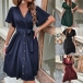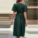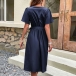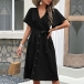 Fashion Solid Color V-neck Short Sleeve Button Self-tie Mini Dress