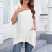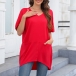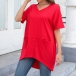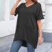 Fashion Solid Color V-neck Short Sleeve Irregular Hemline Shirt