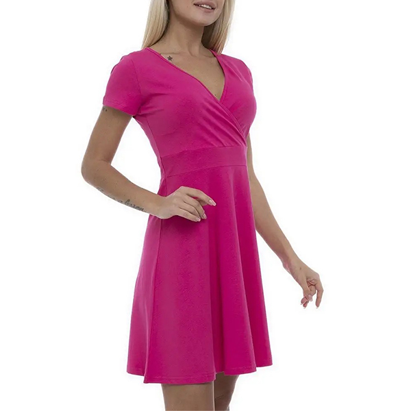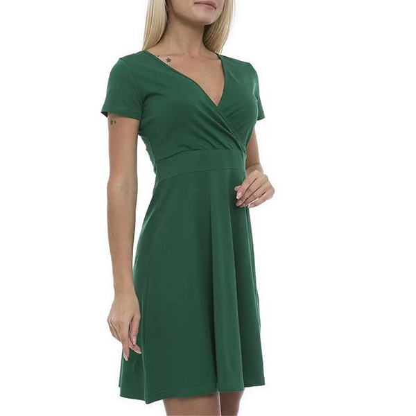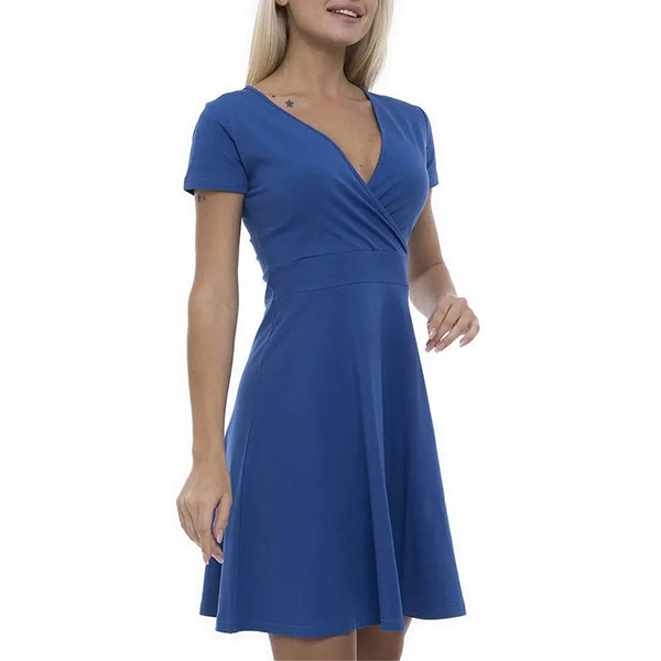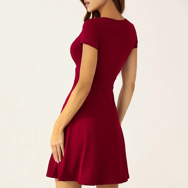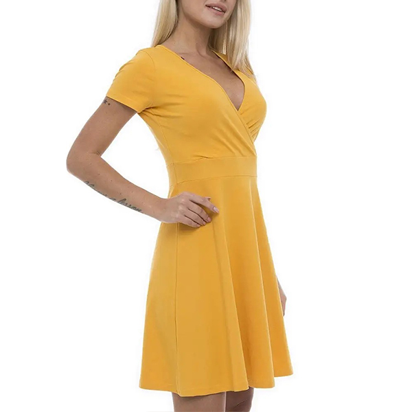 Fashion Solid Color V-neck Short Sleeve Mini Dress