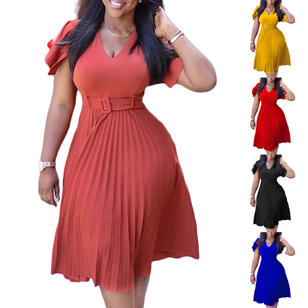 This fashionable and comfortable dress is perfect for any occasion! The solid color is perfect for any outfit, and the pleated skirt adds a touch of elegance. Multi-color is available.