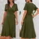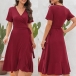 Fashion Solid Color V-neck Short Sleeve Ruffled Slit Wrap Dress