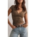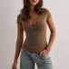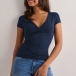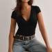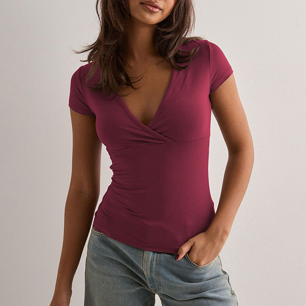 Fashion Solid Color V-neck Short Sleeve Shirt