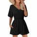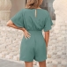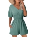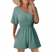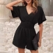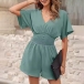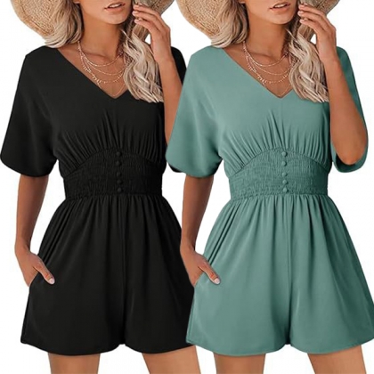 Fashion Solid Color V-neck Short Sleeve Smocked Waist Romper
