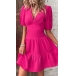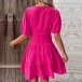 This dress features a bright rose-red color, adding a sleek and sophisticated touch to your outfit. V-neck, puff sleeve, and tiered design, which adds a unique and eye-catching detail to the overall look. Wanna have one?
