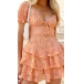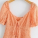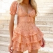 This is a beautiful and feminine dress that is perfect for any special occasion. The dress is made of a soft and delicate lace fabric and features a self-tie V-neckline, short sleeves, and a tiered skirt. Wanna have a try?