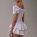 Fashion Solid Color V-neck Short Sleeve Tute Dress