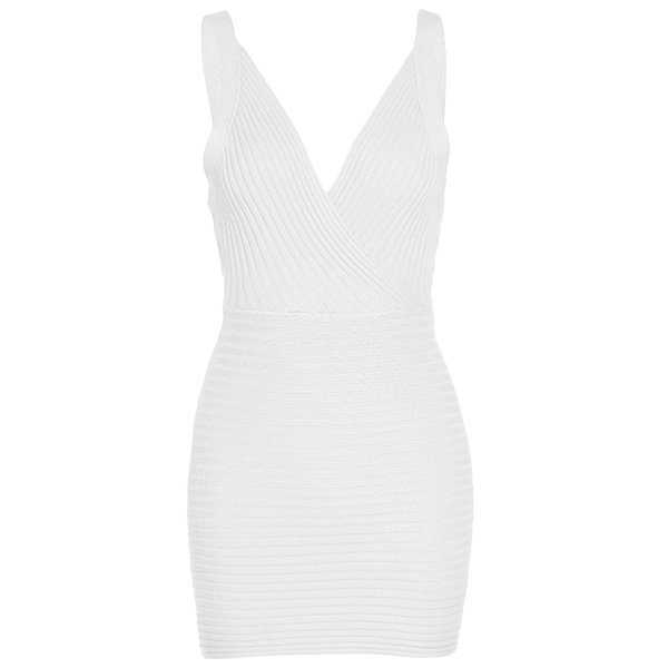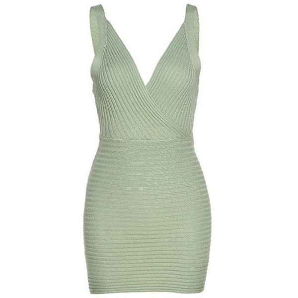 Fashion Solid Color V-neck Sleeveless Bodycon Dress