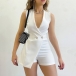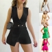 Fashion Solid Color V-neck Sleeveless Double Breasted Skort Romper