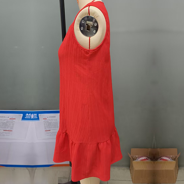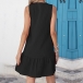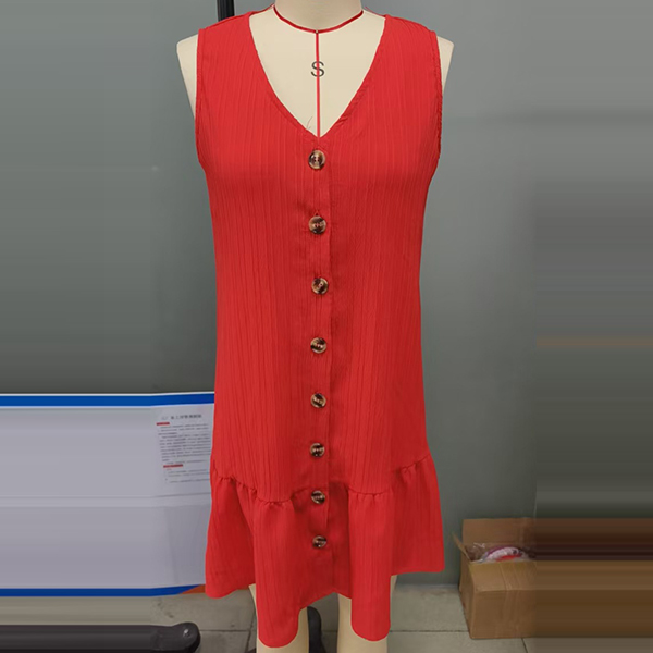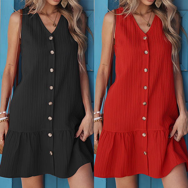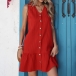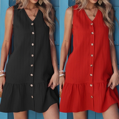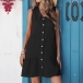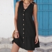 Fashion Solid Color V-neck Sleeveless Front Button Mini Dress