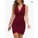 Fashion Solid Color V-neck Sleeveless Irregular Hemline Bodycon Dress