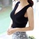 Fashion Solid Color V-neck Sleeveless Ribbed Shirt