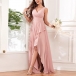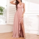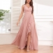 This maxi dress features a sexy V-neck, sleeveless, slit design with ruffle details and maxi-length~It is perfect for special occasions, formal events, or romantic evenings.