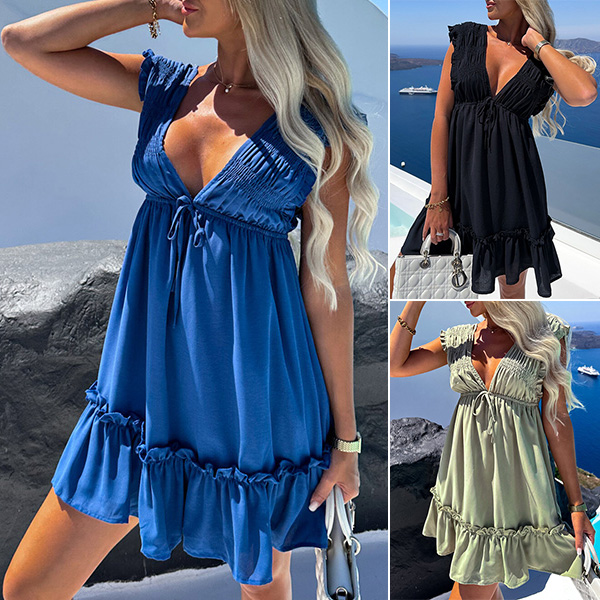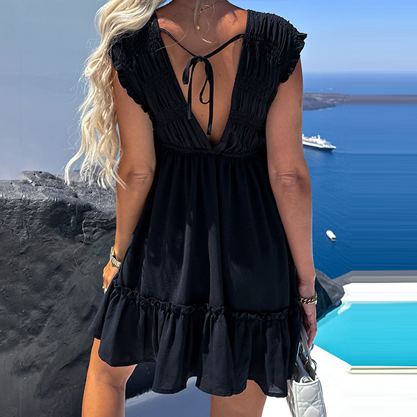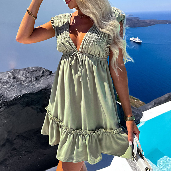 Fashion Solid Color V-neck Sleeveless Ruffled Dress