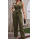 This chic jumpsuit features a flattering V-neckline and sleeveless design, perfect for showing off your shoulders. The self-tie waist allows you to cinch in the jumpsuit for a customized fit, while the straight-cut legs create a sleek and sophisticated silhouette. This versatile jumpsuit is a must-have for any fashion-forward wardrobe.