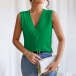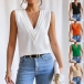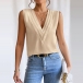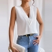 Fashion Solid Color V-neck Sleeveless Shirt