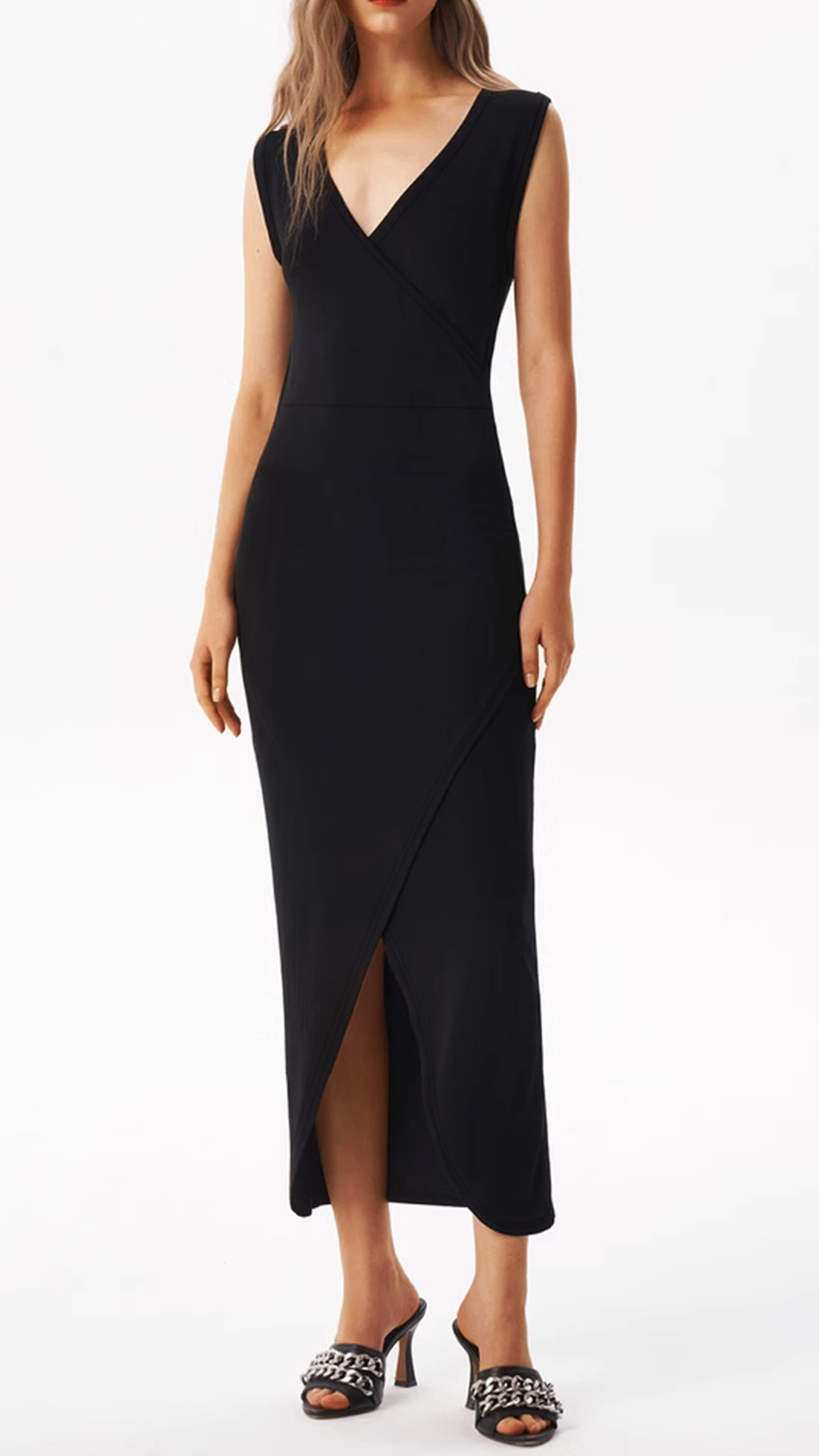 This black dress is ideal for a variety of events, from casual outings to more formal occasions. It features a solid color design, V-neckline, sleeveless style, and a stylish slit detail, creating a chic and sophisticated look. Wanna have one?