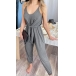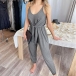 Fashion Solid Color V-neck Tie-belt Slip-style Jumpsuit