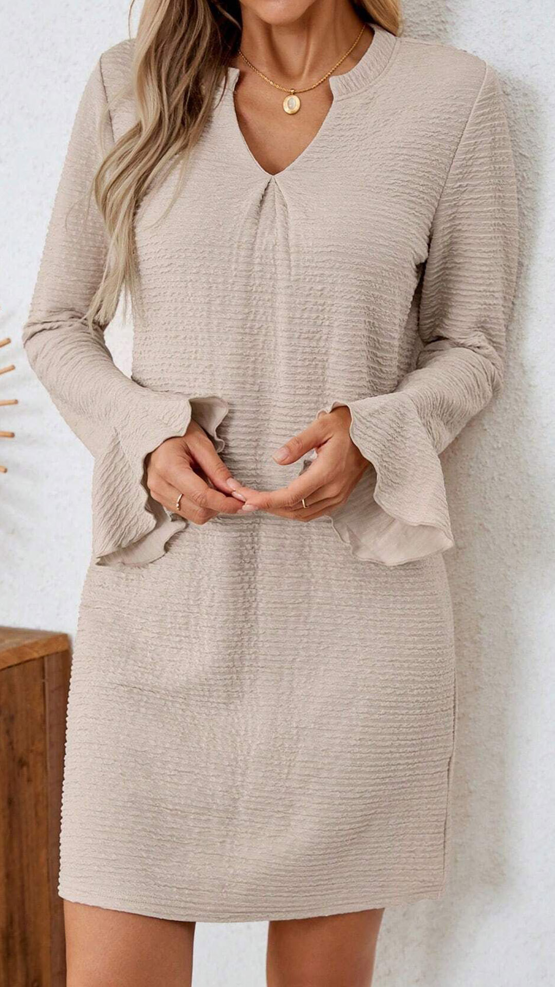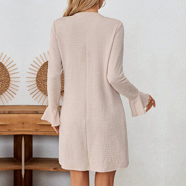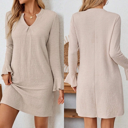 Fashion Solid Color V-neck Trumpet Long Sleeve Mini Dress