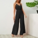Embrace a fashionable and versatile approach to your wardrobe with this pleated jumpsuit! The V-neckline adds a touch of femininity and allure, creating a flattering and alluring look. The wide-leg silhouette adds movement and flow to the jumpsuit, creating a chic and sophisticated vibe. The overall pleated detailing adds a playful and youthful touch, making it perfect for various occasions.