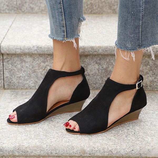 It is a good chance to update your shoe cabinet with this pair of shoes. Solid color style,the wedge heel,