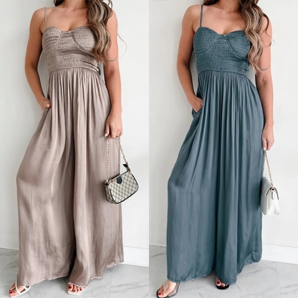 Fashion Solid Color Wide-leg Cami Jumpsuit