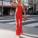 Fashion Solid Color Wide-leg Slip Jumpsuit
