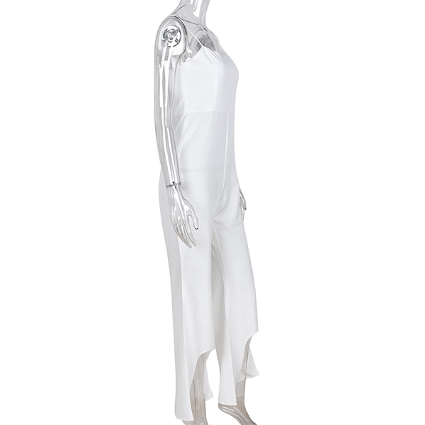 Whether you're headed to the office or out for a night on the town, this jumpsuit is sure to turn heads. The sleek silhouette is both stylish and flattering, while the wide-leg design with irregular hemline add some chic vibe to it.
