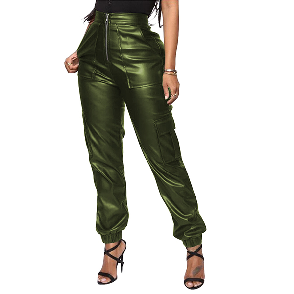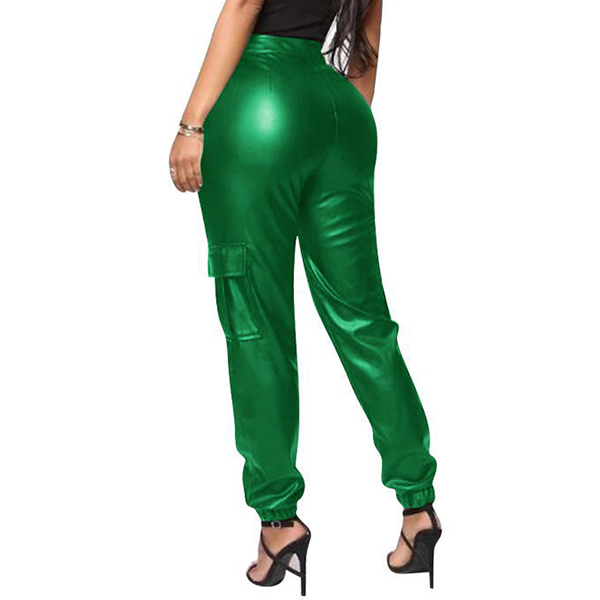 Fashion Solid Color Zipper Artificial Leather PU Pants