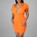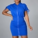 Fashion Solid Color Zipper Back Lace-up Short Sleeve Bodycon Hoodie Dress