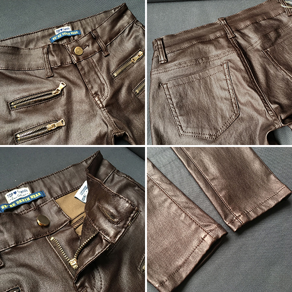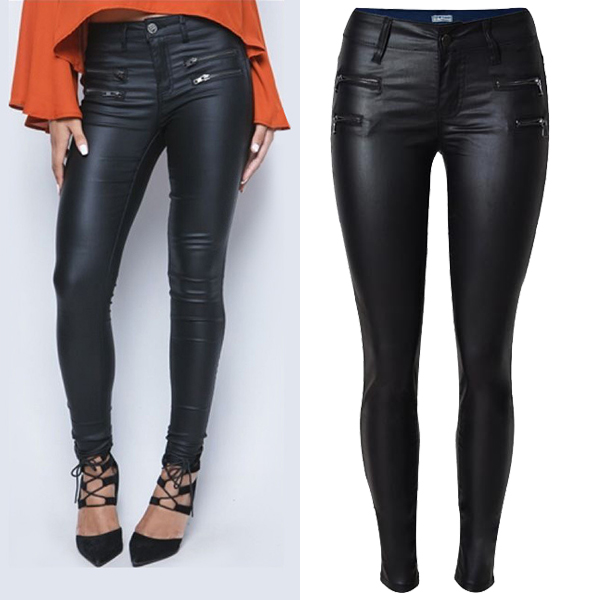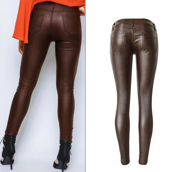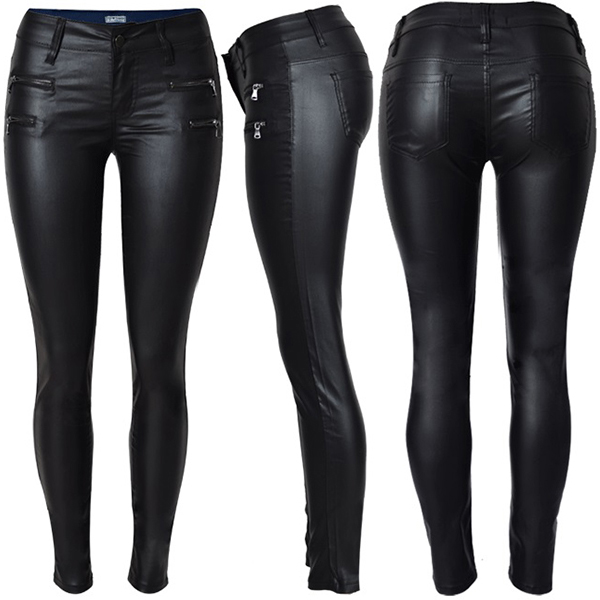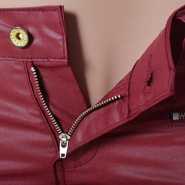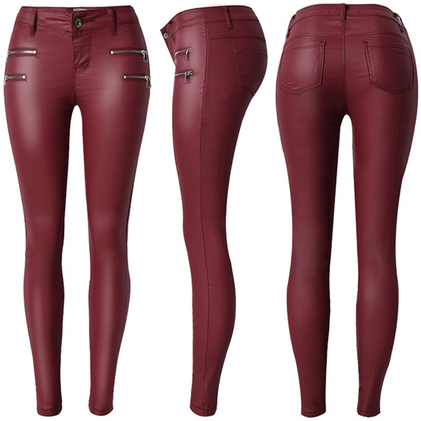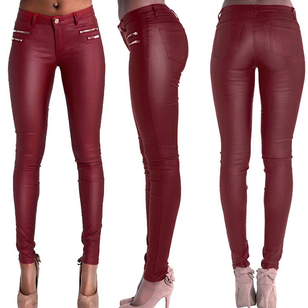Fashion Solid Color Zipper Low-rise Artificial Leather PU Slim Fit Pants