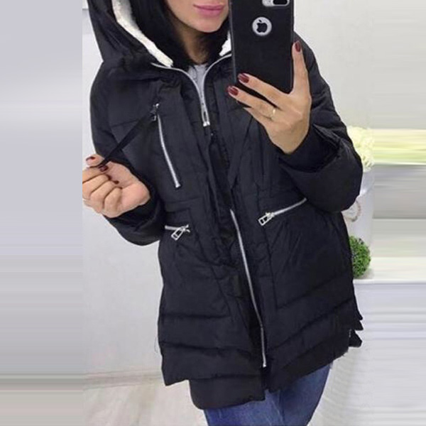 Invite this padded coat to your wardrobe to get prepared for the winter season. The hooded silhouette and plush lining design can ensure you a warm and comfortable day,while the zipper pocket design can keep your hands warm as well as keep your belongings safety. A good choice in these cold days.