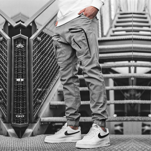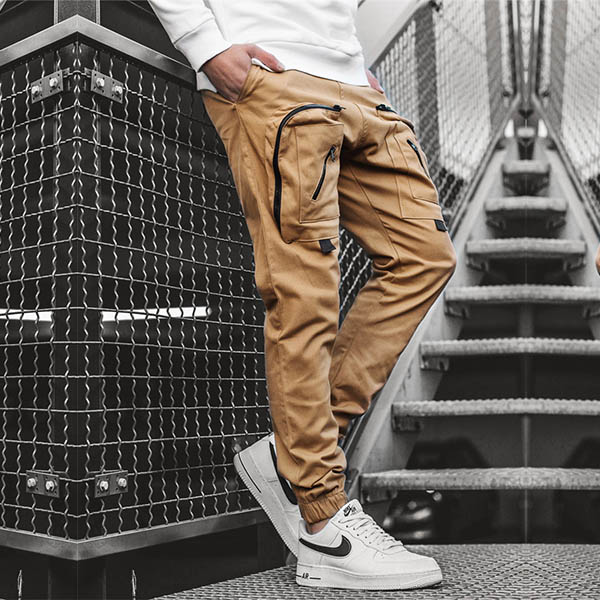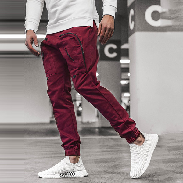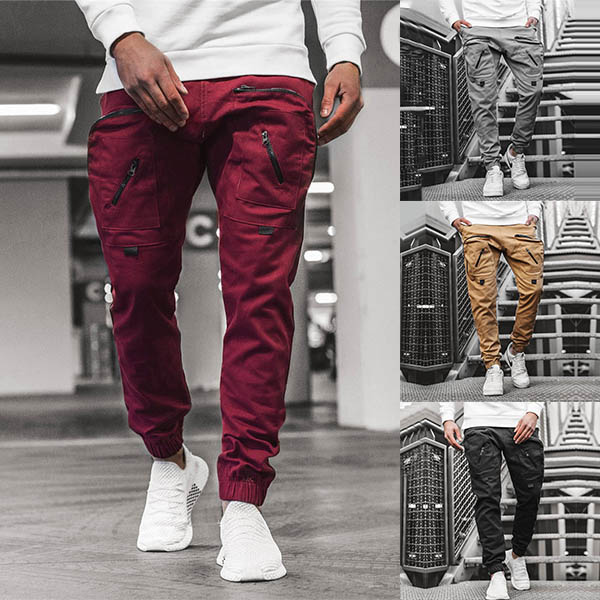 Fashion Solid Color Zipper Pocket Man's Casual Pants