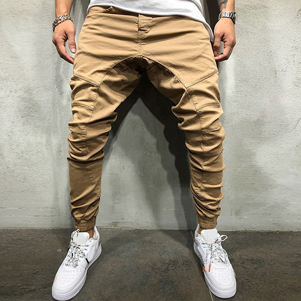Fashion Solid Color Zipper Pockets Men's Casual Pants