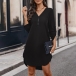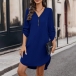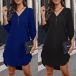 Fashion Solid Color Zipper V-neck Long Sleeve Irregular Hemline Mini Dress