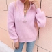 Fashion Solid Color Zipper V-neck Long Sleeve Knitted Sweater