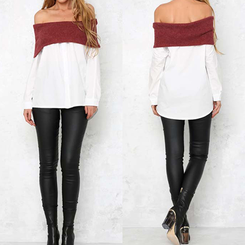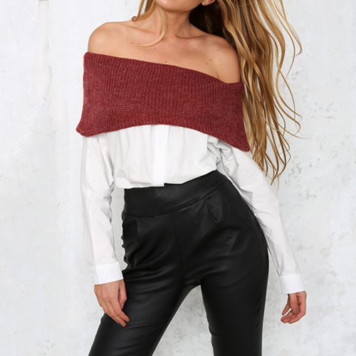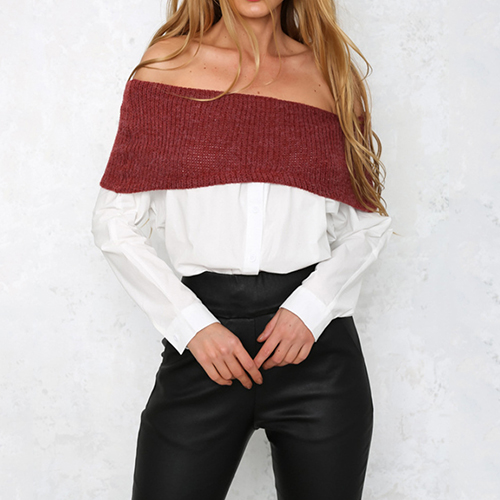 It is decorated with splice color off shoulder design and long sleeve patterns, stylish and unique. There