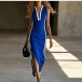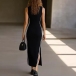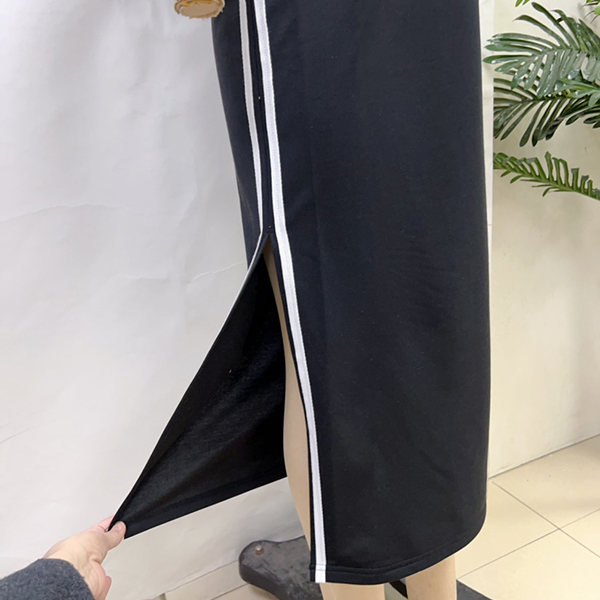 Redefine casual elegance with this head-turning dress that perfectly blends athletic inspiration with feminine allure. Featuring iconic white vertical stripes down both sides, this dress creates an instant slimming effect, visually elongating your frame and highlighting your curves. Designed with a daring side slit, this midi dress offers unrestricted movement and a flash of leg with every step. Made from a comfortable, stretchy fabric (likely ribbed knit), it hugs the body without feeling restrictive. It’s the perfect "throw-on-and-go" piece for a casual brunch, a summer vacation, or a trendy street-style look.