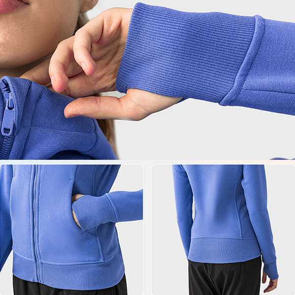 Featuring a stand collar and long sleeves, this jacket exudes a sporty and athletic vibe. The hooded design adds an extra layer of protection from the elements and adds a sporty touch to the jacket. The fabric is soft and cozy, making it perfect for keeping you warm during colder weather or outdoor activities.