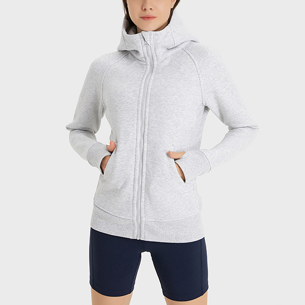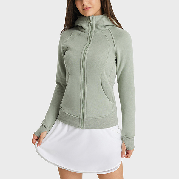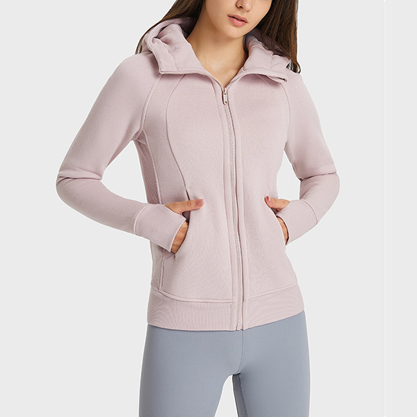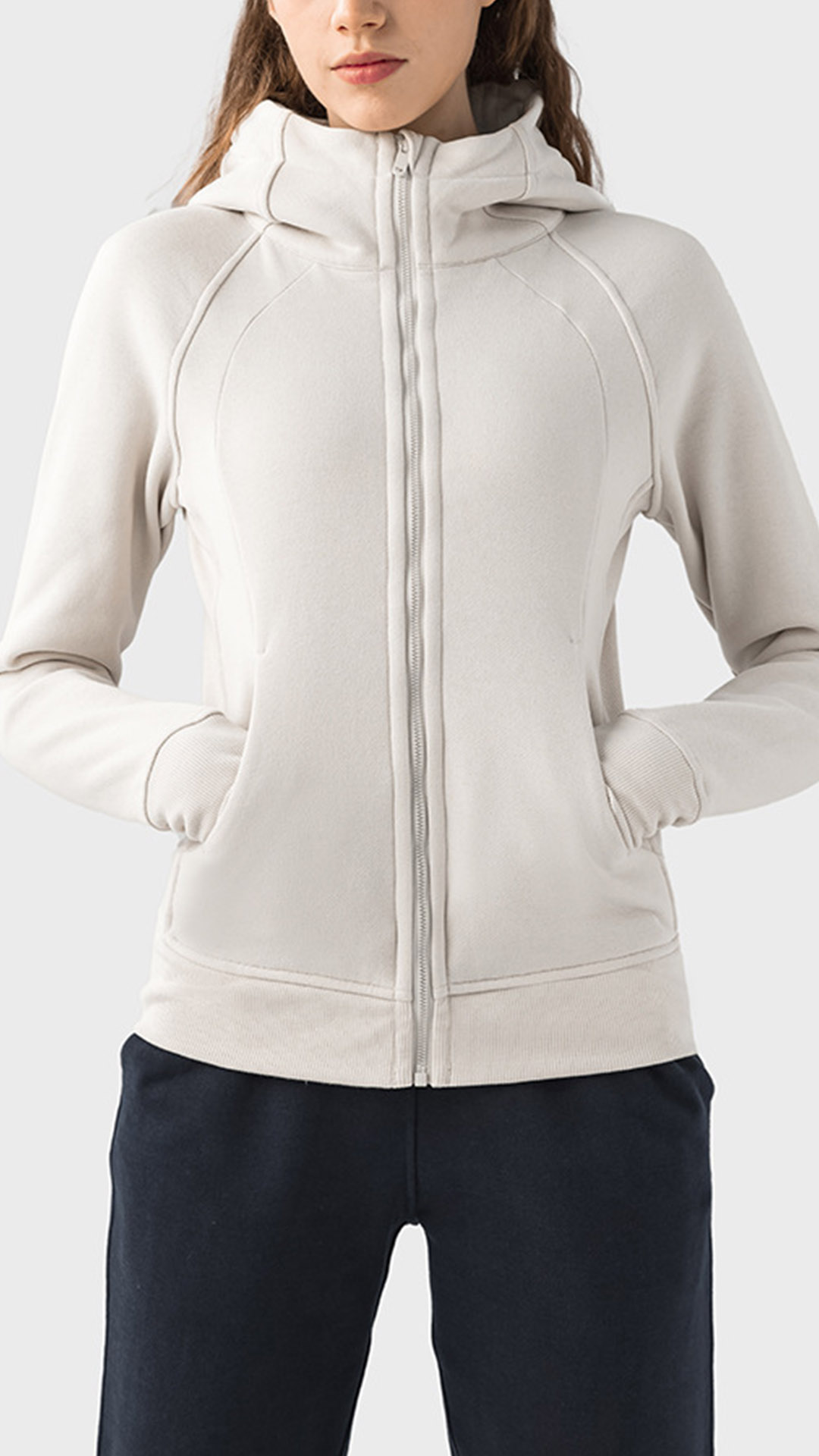 Fashion Sporty Solid Color Long Sleeve Stand Collar Hooded Warm Sweatshirt Jacket