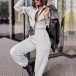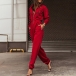This jumpsuit combines style and comfort, making it the perfect choice for an active and fashionable lifestyle. Featuring a sporty stand collar and a half-zipper design, this jumpsuit exudes a modern and athletic vibe. Crafted from high-quality and breathable fabric, this jumpsuit offers utmost comfort throughout the day. It is perfect for various occasions, whether it's a casual day out or a workout session.