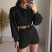 Fashion Sporty Two-piece Set Consist of Crop Hoodie and Shorts