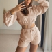 L : Bust : 108cm(42.52"); Waist : 74cm(29.13"); Hips : 107cm(42.13"); Sleeve : 62.5cm(24.61"); Top Length : 44.5cm(17.52"); Pants Length : 36cm(14.17");