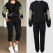 Fashion Sporty Two-piece Set Consist of Sweatshirt with Sequin Angel Wing Pattern and Pants with Side Patch Pockets