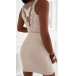 This tank dress features square neckline, gauze spliced back, sleeveless and bodycon slihoutte. The butterfly design on the back gauze create a whimsical and romantic detail, adding a feminine and delicate touch to the dress. Hope you like it.