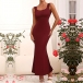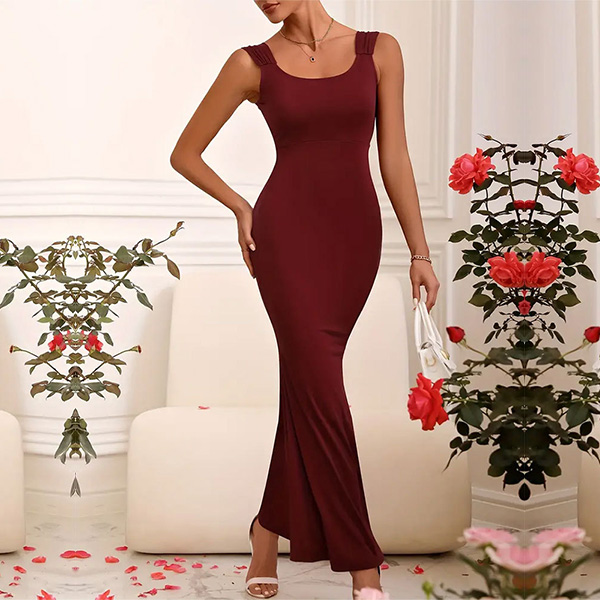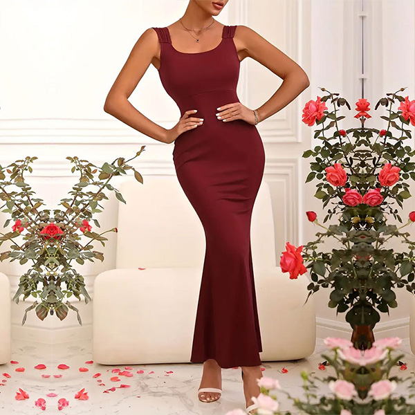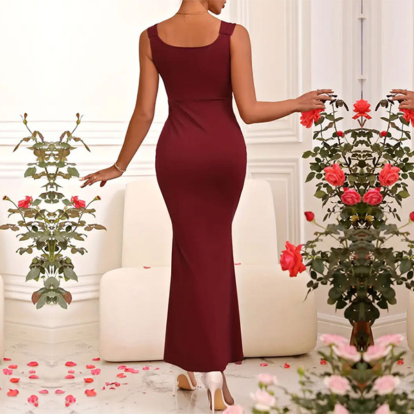 Look at this dress! The combination of the maxi-length silhouette, bodycon fit, square neckline, and stretch-infused fabric results in a dress that is both striking and versatile.