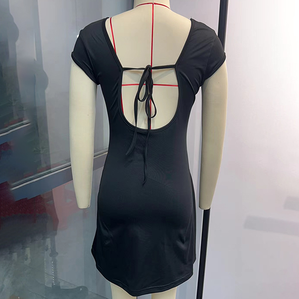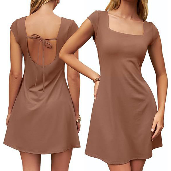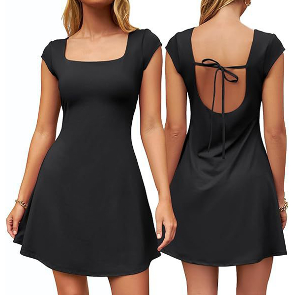 Fashion Square Neck Cap Sleeve Self-tie Backless Mini Dress
