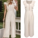 Fashion Square Neck Front Button Ruffle Sleeveless High-rise Straight-cut Jumpsuit